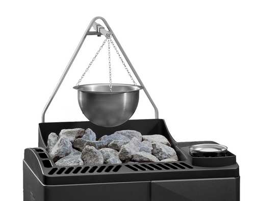 Standmodell für private und gewerbliche Saunen. Robuste Edelstahlkonstruktion mit extra großen Luftkanälen für optimale Luftkonvektion, dreischalige Ausführung. Elegante Aluminiumguss-Oberseite in Anthrazit-Perl-Optik. Aromaschale und Kräuterschale optional erhältlich.