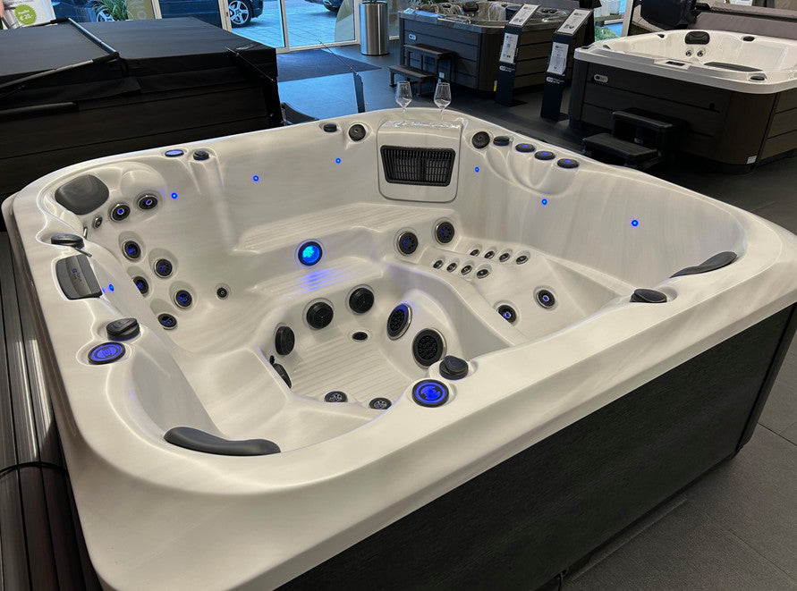 Mit 66 leistungsstarken Düsen, angetrieben von drei 3-PS-Pumpen, bietet der Portofino ein therapeutisches Hydromassage-Erlebnis, das beruhigt und regeneriert. Das PlatinumPure™ Quadruple Purity System sorgt für klares Wasser und maximale Reinheit.